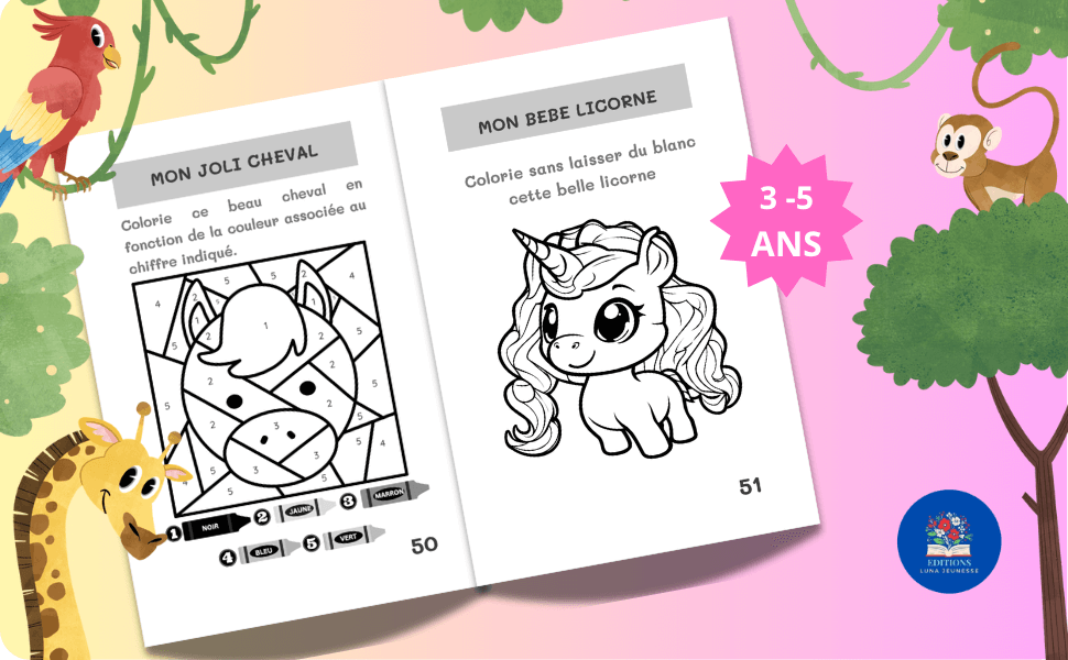 Ce livre d’écriture et de coloriage est vraiment adapté aux enfants de 3 à 5 ans.